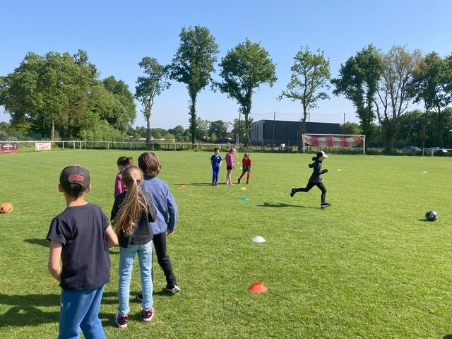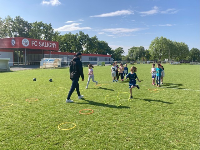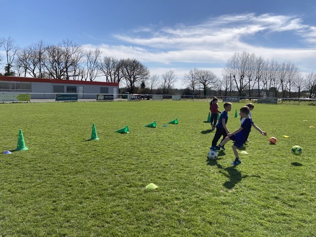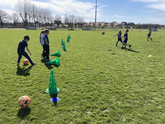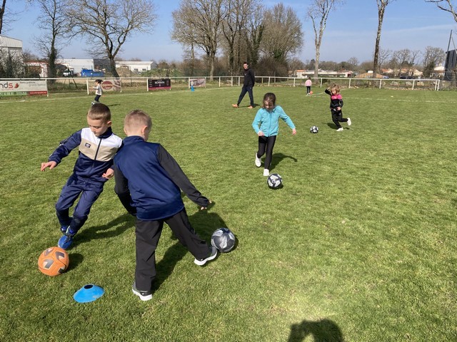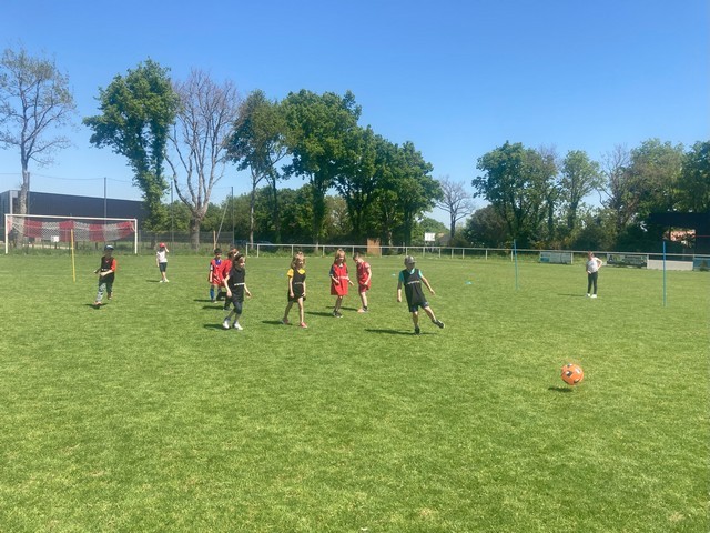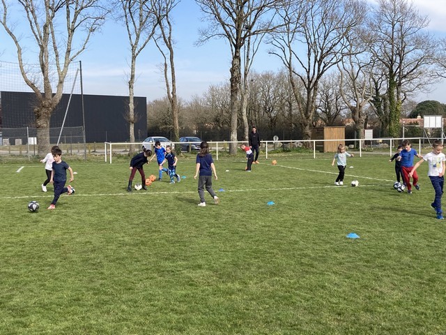 “On va au stade de foot presque tous les mardis. On reste entre élèves de la classe de CE1-CE2. On fait deux groupes mais pas toujours les mêmes. On fait plusieurs jeux. On change tout le temps. On nous aide et ça nous entraine. Les enfants qui ne font pas de foot, ça peut leur donner envie. On s’amuse bien.”