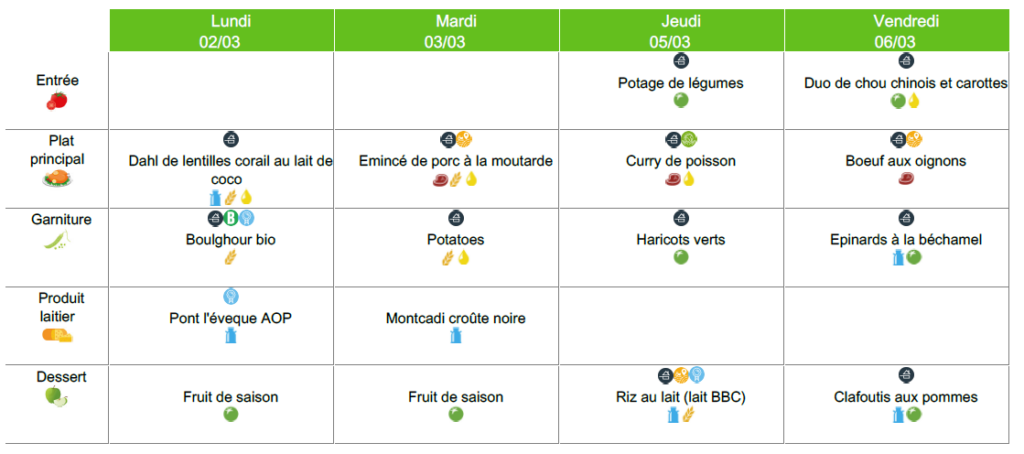 Les menus de la cantine Retrouvez ici les menus dans votre restaurant scolaire. Vous pouvez aussi les consulter sur le site : https://www.radislatoque.fr/ Menus du 2 au 6 mars Menus du 09 au 13 mars